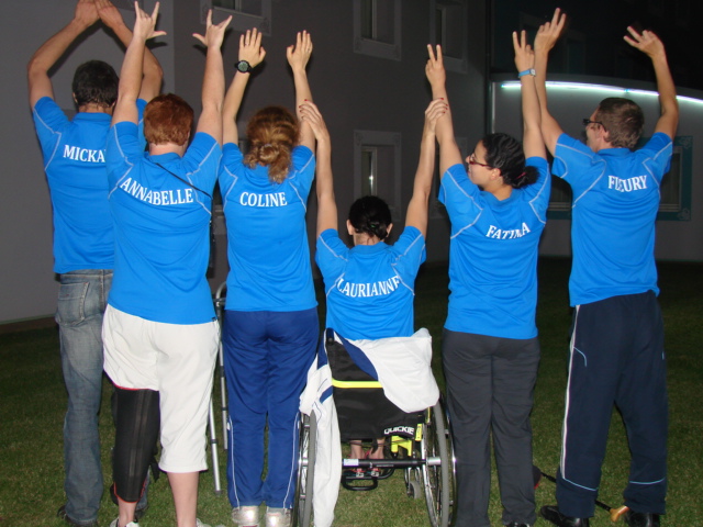 Nous sommes partis à dix: Jessica, Stéphane, Cyril, Frédéric, Annabelle, Adrien, Maëlle, Marine, Emmanuelle et Coline participer au tournoi de foot fauteuil annuel dans l'Eure.