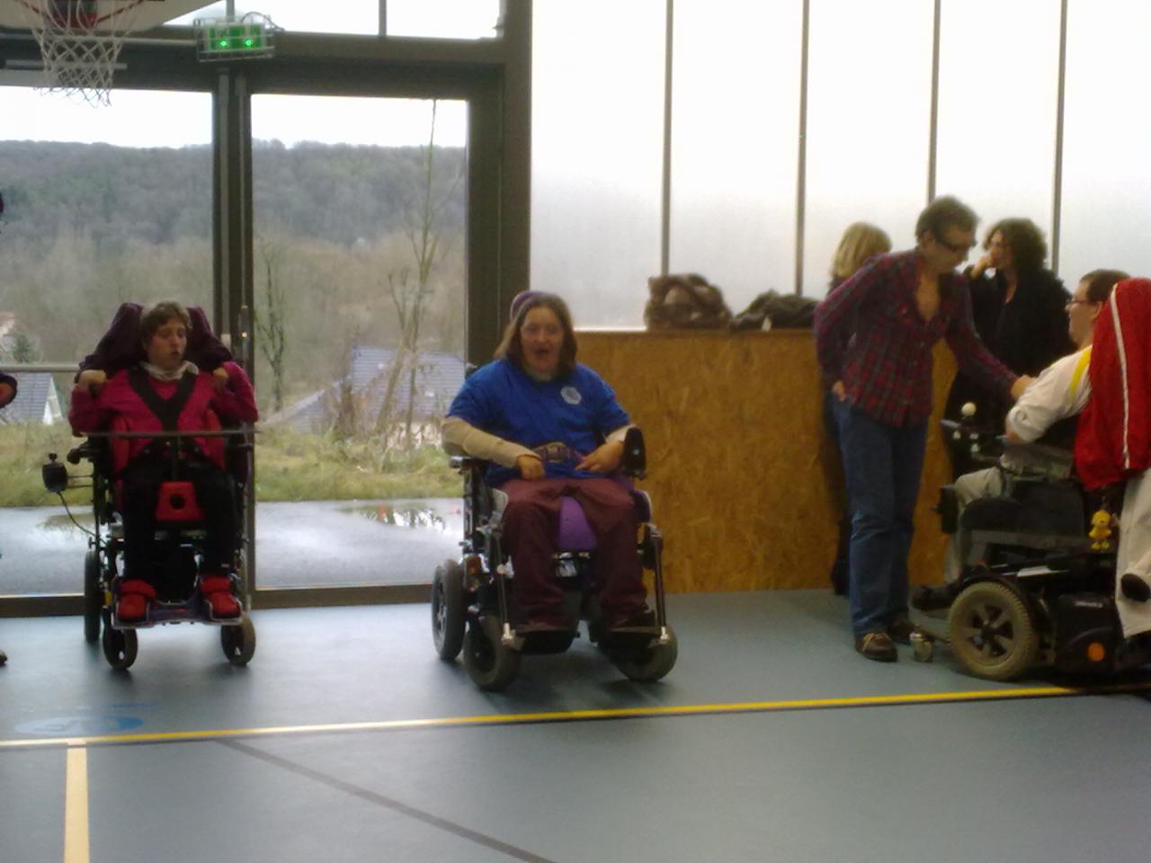 Nous sommes partis à dix: Jessica, Stéphane, Cyril, Frédéric, Annabelle, Adrien, Maëlle, Marine, Emmanuelle et Coline participer au tournoi de foot fauteuil annuel dans l'Eure.